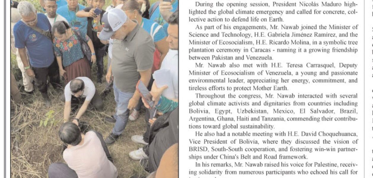 Mr. Nawab also met with H.E. Teresa Carrasquel, Deputy Minister of Ecosocialism of Venezuela, recognizing her dedication and tireless efforts to protect Mother Earth. Throughout the congress, he engaged with climate activists and dignitaries from countries including Bolivia, Egypt, Uzbekistan, Mexico, El Salvador, Brazil, Argentina, Ghana, Haiti, and Tanzania, commending their contributions toward global sustainability.